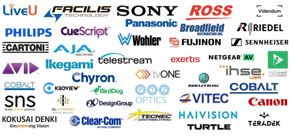 Over 40 of the industries leading manufactures will be exhibiting including AJA, Broadfield, CableCast, Cartoni, Cobalt Digital, Clear-Com, Cuescript, Facilis, Haivision, IHSE, Ikegami, Kokusai Denki, LiveU, Panasonic, Philips, Riedel, Ross, SKMac, Shure, Sony, Studio Network Solutions, TecNec, TVOne, Videndum, Vitec, Wholer, and more!